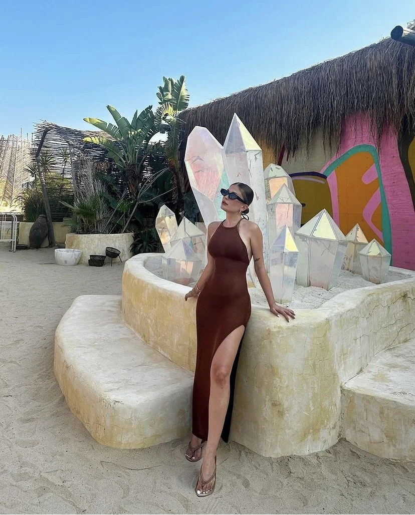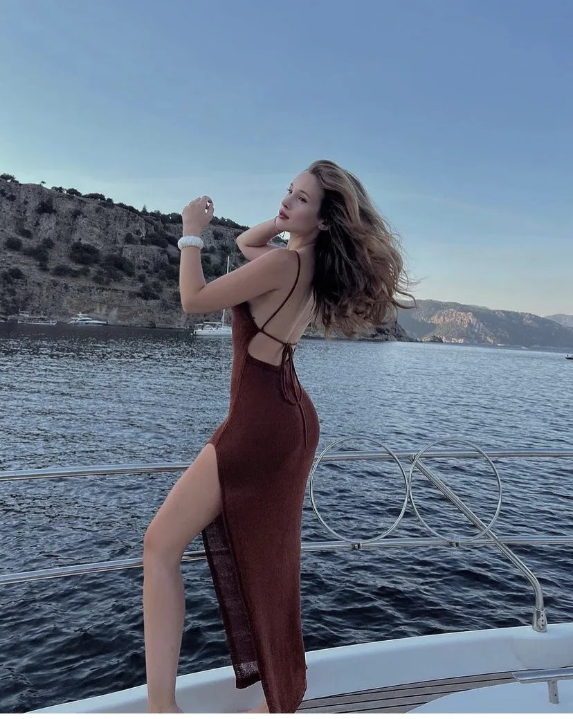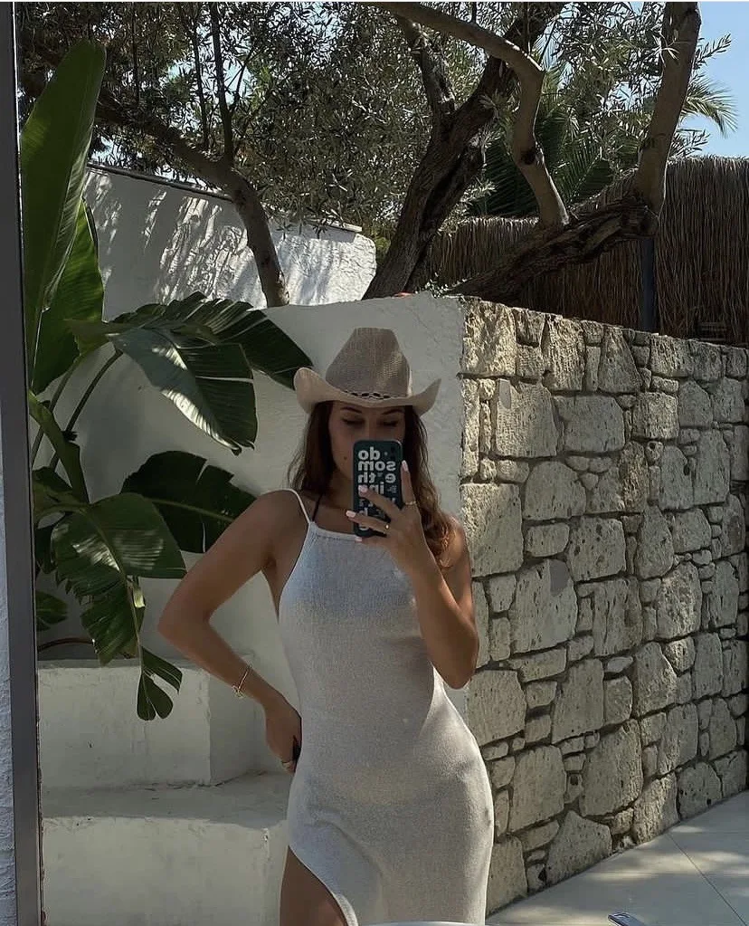 Cover Up Beach Sexy See Through Maxi Slit Bodycon Summer knit Dress Bikinis Cover-ups Elegant Halter Beachdress feminina