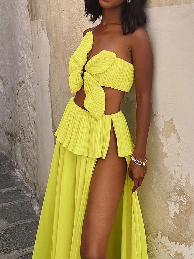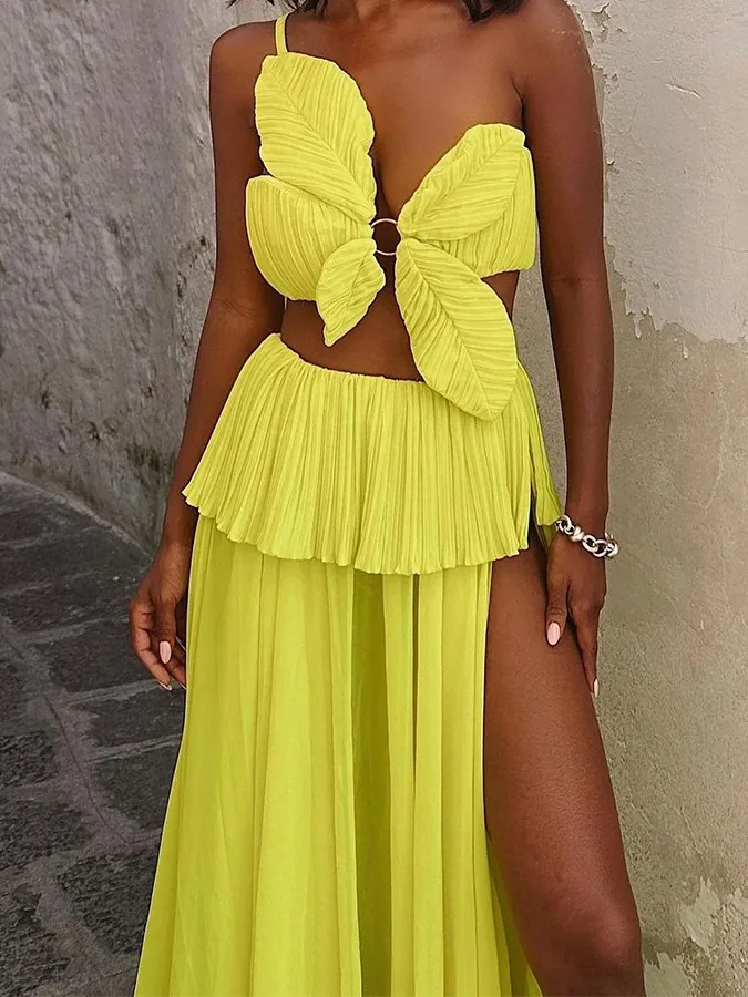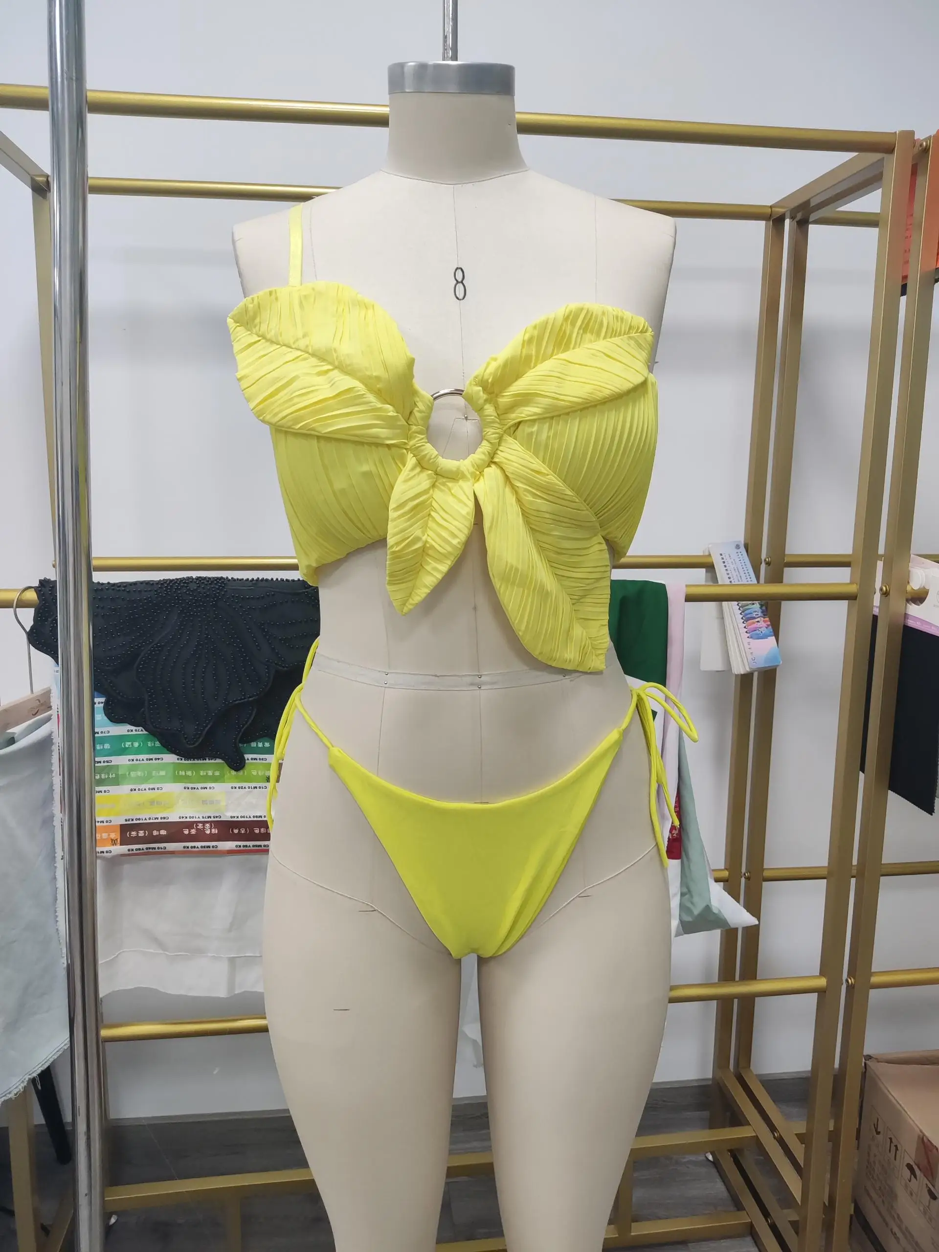 Pale Yellow 3d Three-Dimensional Split Women Bikini And Covered Long Skirt Butterfly Design Sexy Youth Fashion Swimsuit 2024