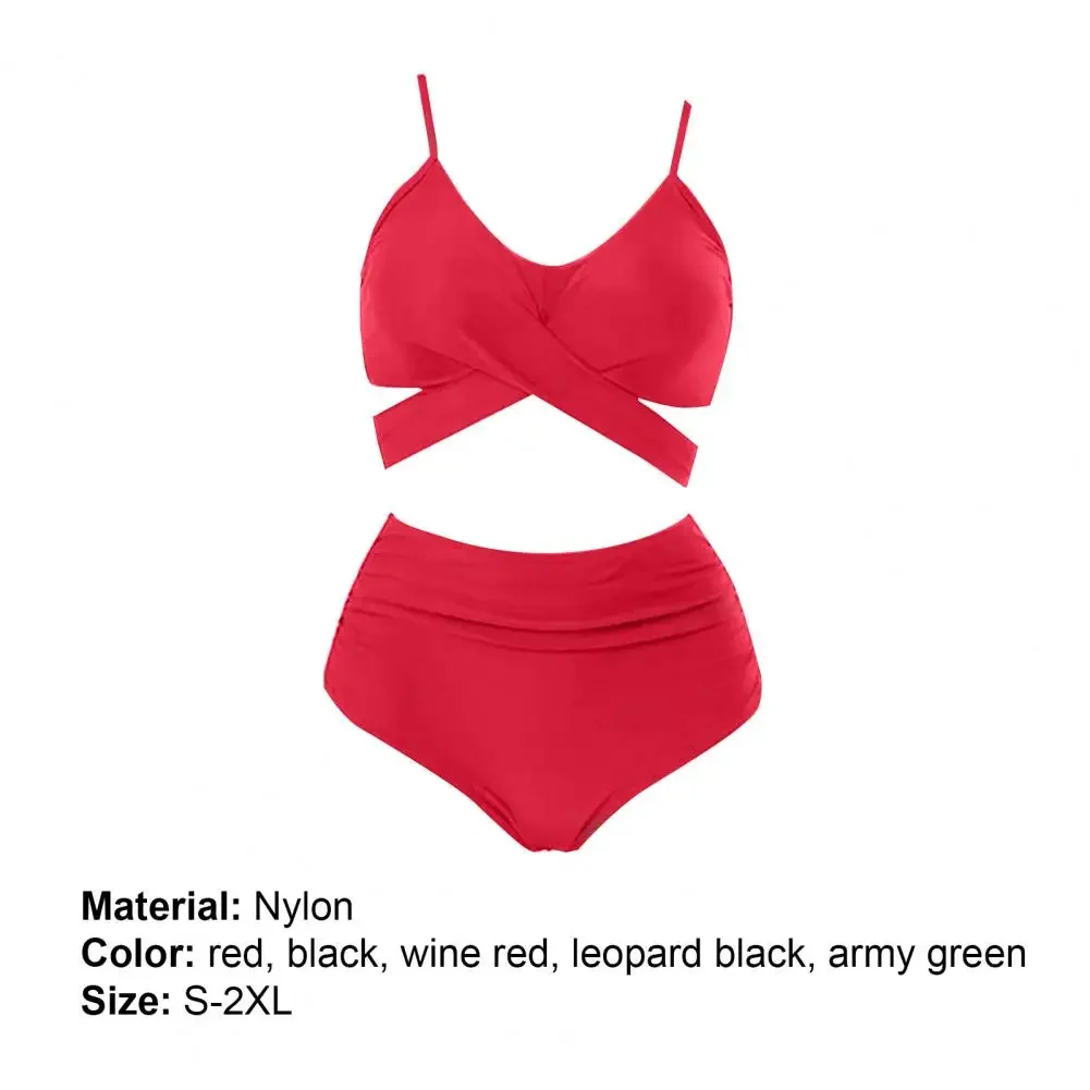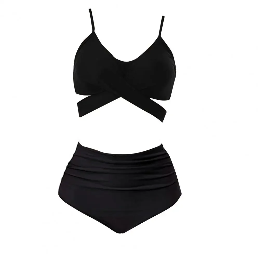 Summer Women Bikini Set Solid Color High Waist Spaghetti Strap Bra Panties Bikini Set Cross Bandage Lady Swimsuit Two Piece Set