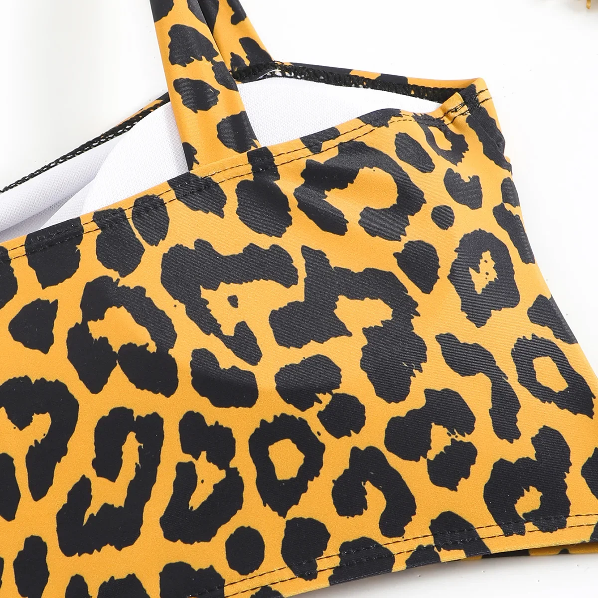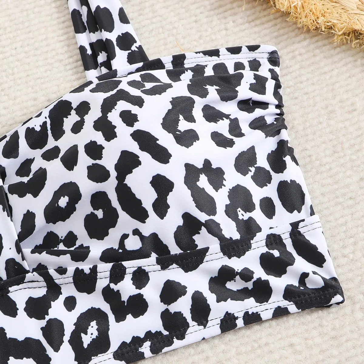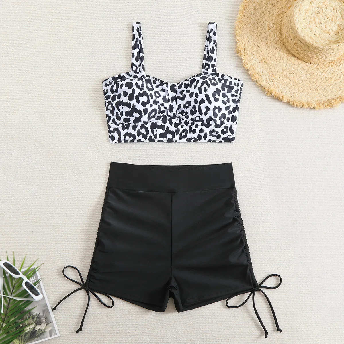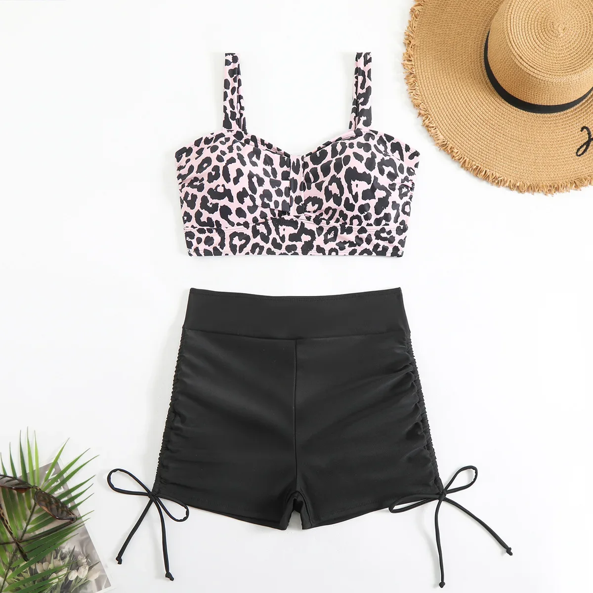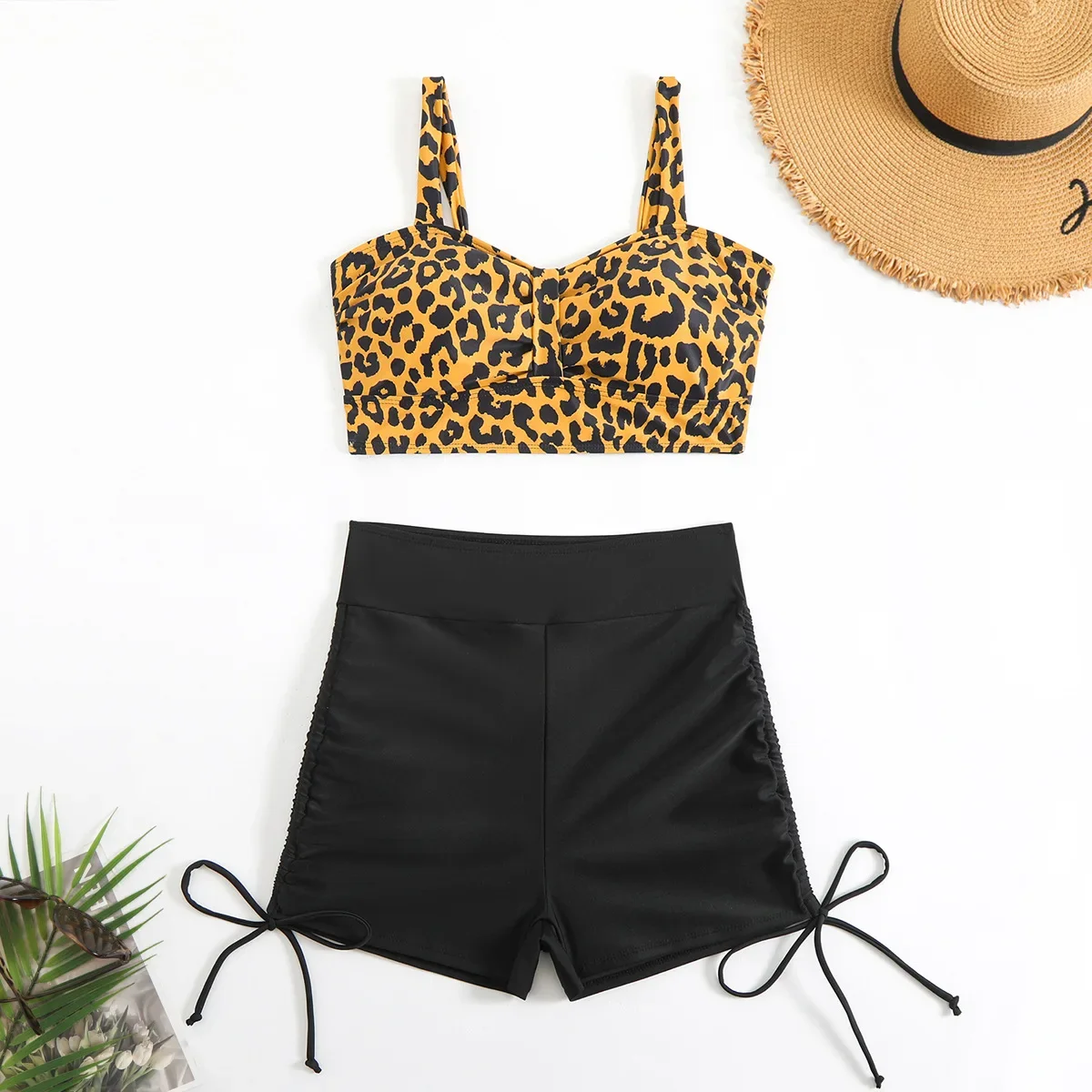 Vintage Black Leopard Print Bikini Set Women Pad Drawstring Side High Waist Panties Swimsuit Beach Bathing Suit Swimwear 2025